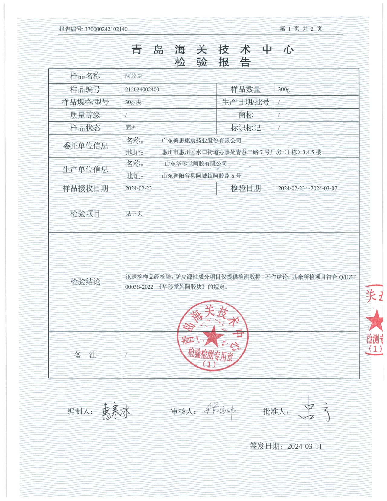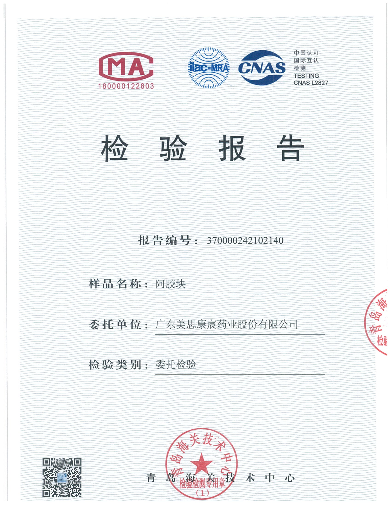 2024年美宸天膠檢驗(yàn)報(bào)告