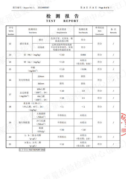 無有害物質:鉛、砷、甲醛等有害成分均未檢出或遠低于安全限值。