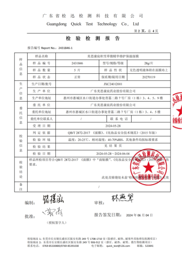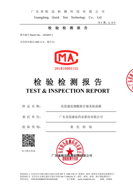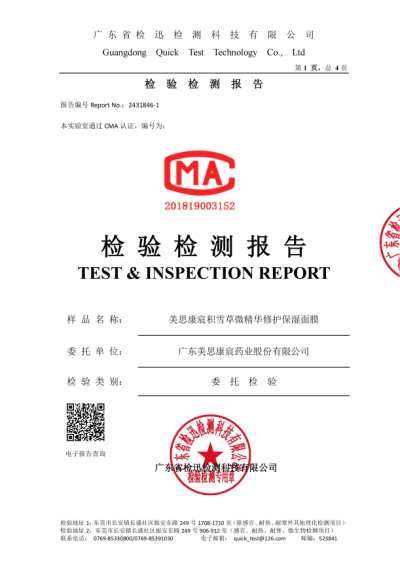美思康宸小姐姐系列面膜檢測(cè)最新檢測(cè)報(bào)告