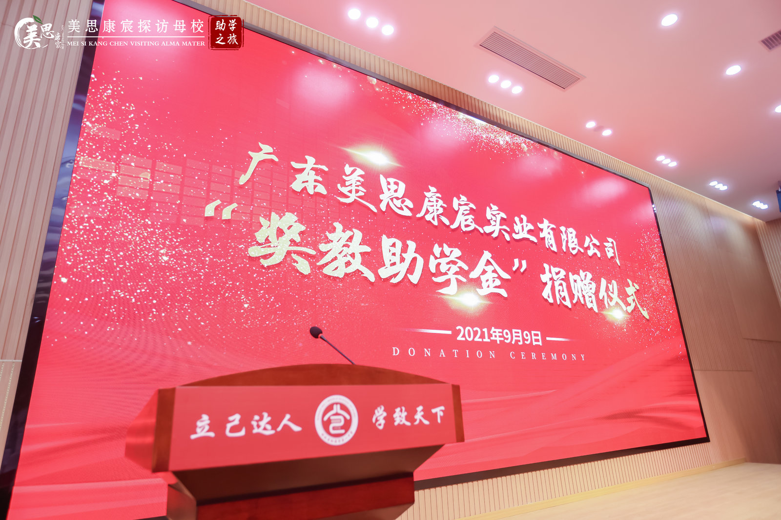 2021年9月9日下午,廣東美思康宸實業(yè)集團有限公司“松滋一中獎教助學(xué)金”捐贈儀式在我校學(xué)術(shù)報告廳舉行。市委常委、組織部長劉紅星、市教育局局長鄭奎、校黨委書記、校長雷華、校黨委副書記、副校長王中院出席捐贈儀式。